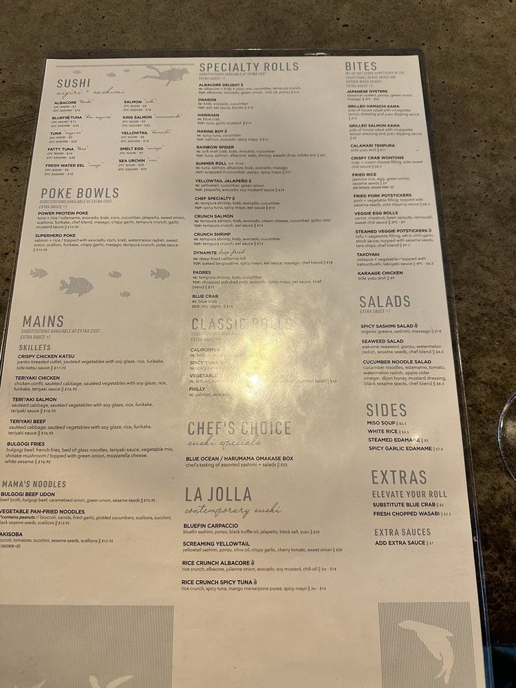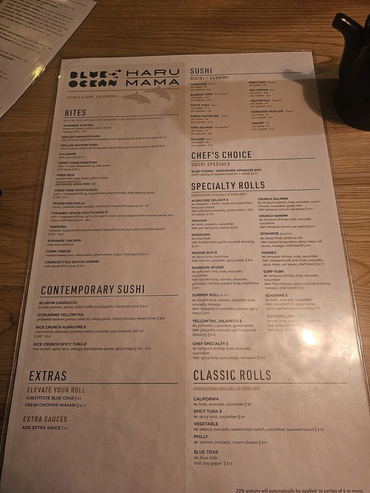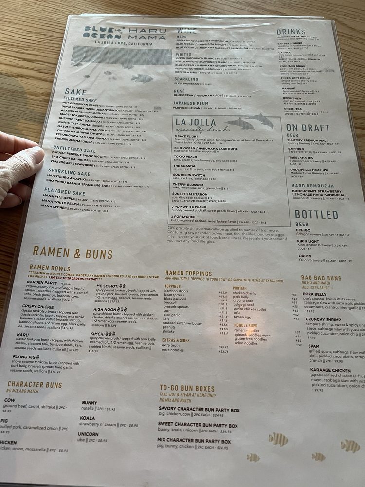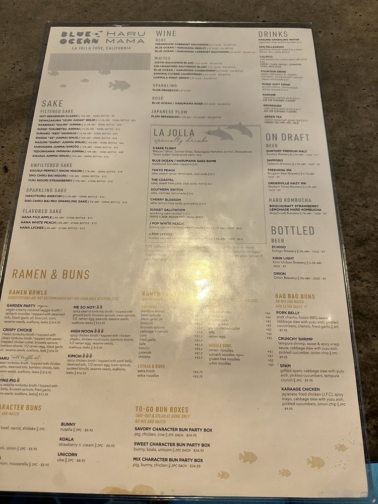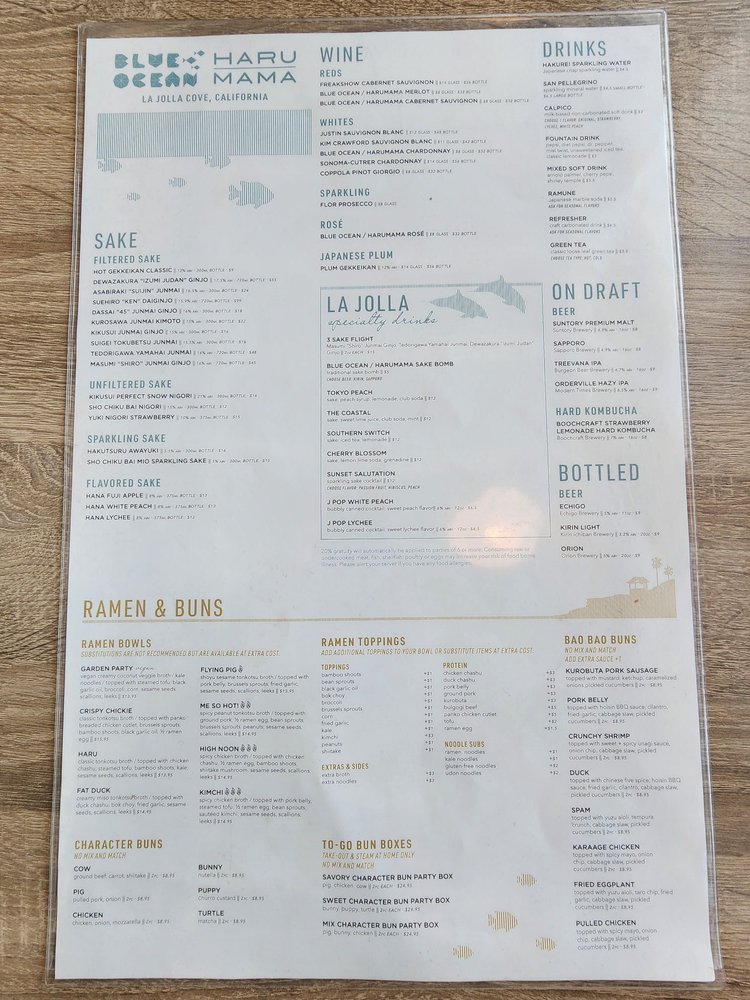 Blue Ocean - Harumama is a trendy and classy restaurant located in La Jolla, CA, offering a fusion of Asian cuisine with a focus on ramen, sushi, and vegan options. The ambiance is described as high-scale and fancy, providing a beautiful oceanfront view. Customers praise the fresh sushi rolls with explosive flavor profiles, as well as the generous portion sizes that are ideal for sharing. The service is top-notch, with attentive and friendly staff members. The menu includes a variety of options, from traditional ramen to cute and delicious dessert buns. Overall, Blue Ocean - Harumama offers a delightful dining experience with a focus on quality food, exceptional service, and a stunning ocean view.
